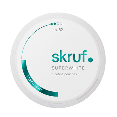 Skruf Superwhite No.52 Fresh Mint Snus è la nuova versione migliorata di SKRUF Super White #2 Snus. Lo Snus Skruf Superwhite No.52 Fresh Mint ha un...